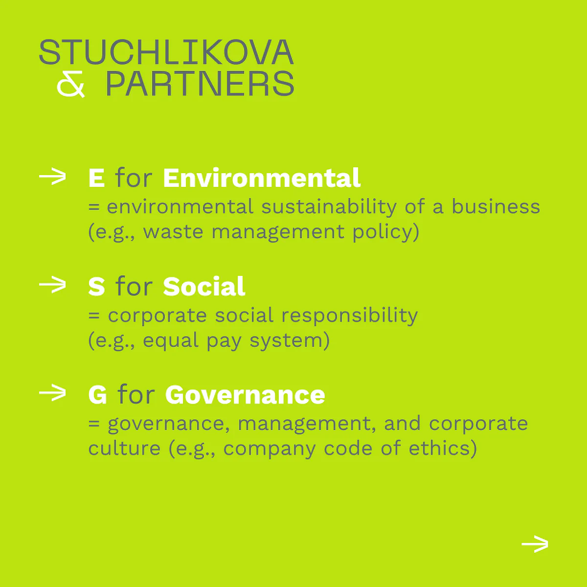 If you are interested in our ESG services, please do not hesitate to contact us at info@stuchlikova.com or call +420 222 767 393 to schedule an informational consultation.