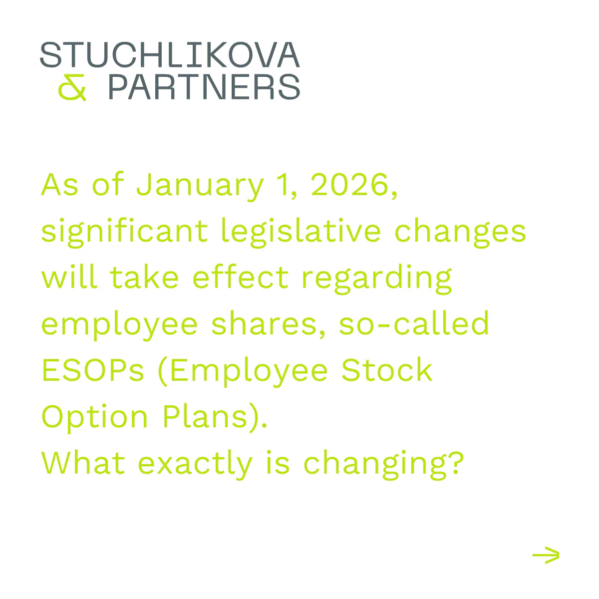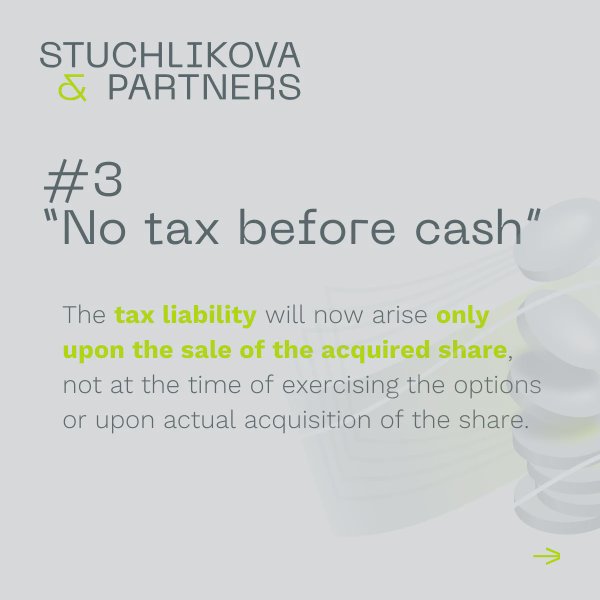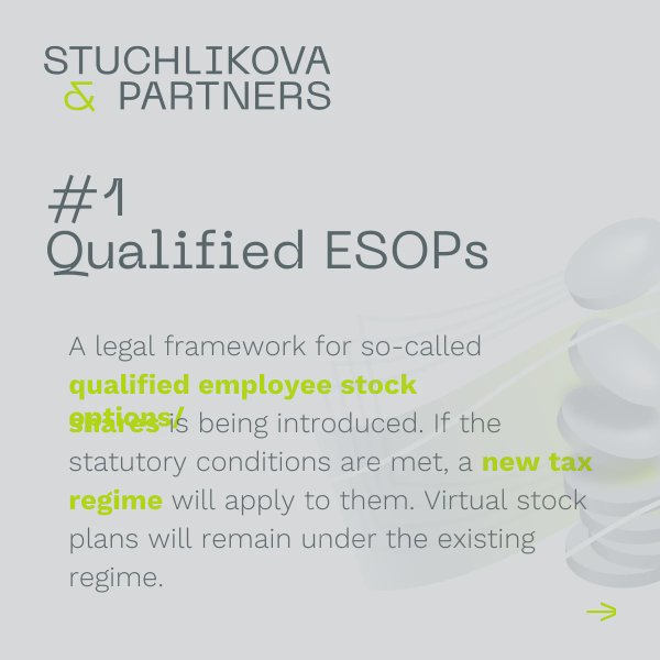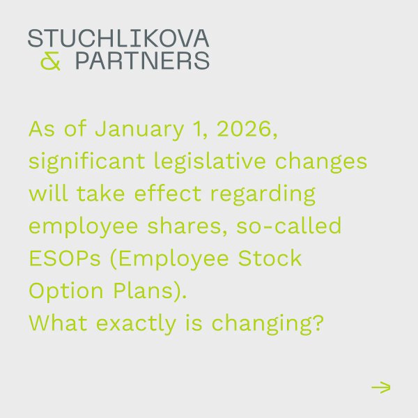 On September 10, 2025, the Chamber of Deputies approved the accompanying law to the unified monthly employer reporting system. The amendment to the Income Tax Act, effective from January 1, 2026, significantly increases the attractiveness of qualified ESOPs (Employee Stock Option Plans)—primarily by introducing the “no tax before cash” principle.