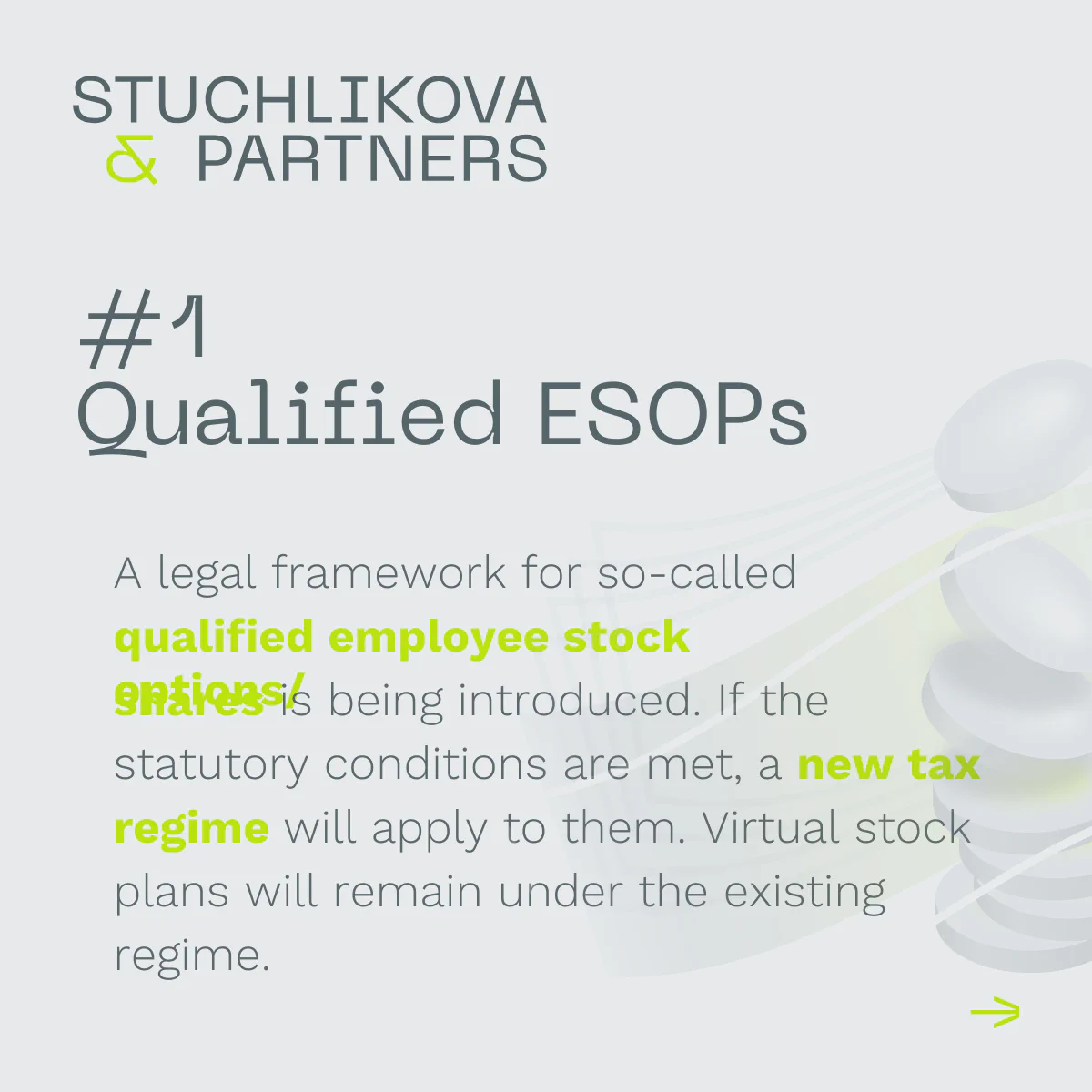 A legal framework is being introduced for so-called qualified employee stock options (ESOPs), provided certain legal conditions are met (e.g. non-transferability, a written agreement, and the right to exercise only after 3 years). Virtual plans remain outside of this regime.