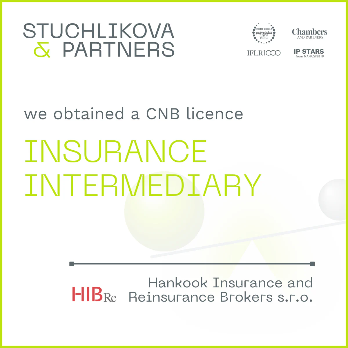For our client, Hankook Insurance and Reinsurance Brokers s.r.o., we obtained a Czech National Bank licence for Insurance Intermediary.